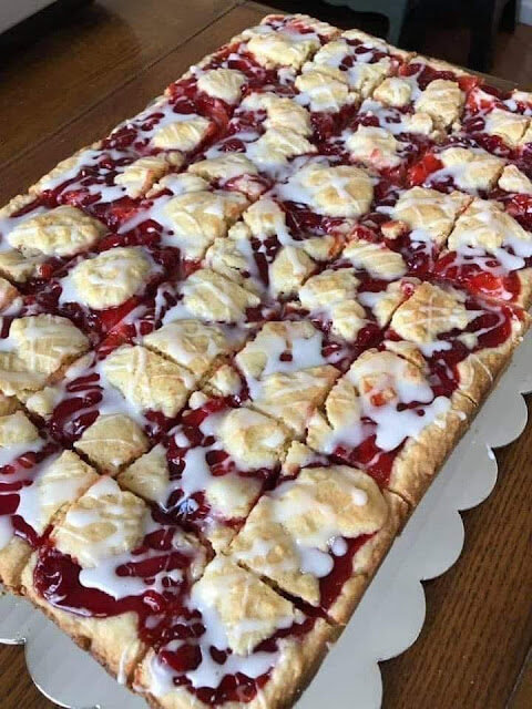 Remove from oven and place on a wire rack to cool completely. Once cool, prepare the glaze. Whisk together the powdered erythritol and heavy cream until smooth and drizzle over the bars. Cut into 35 squares and serve.