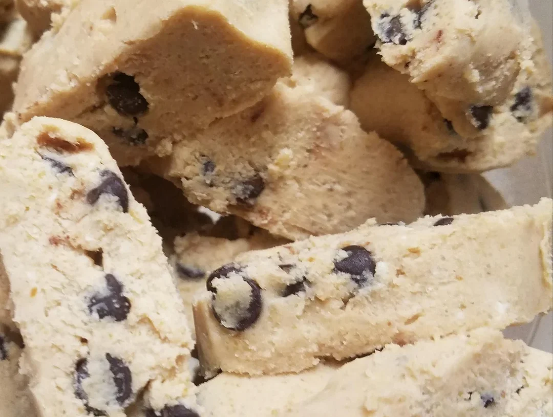 Mix (cream) together all ingredients. Refrigerate dough for 30 minutes. Portion into teaspoon size balls and spoon onto a parchment lined baking sheet OR roll into a log in parchment paper like a regular tube of cookie dough. Freeze for another 30 minutes, then (if you did the log approach) cut into slices like a regular tube of cookie dough. Once frozen / portioned, store in a tupperware or ziploc in the freezer.