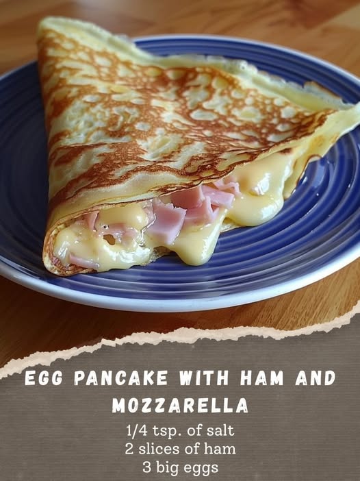 A savory, protein-packed breakfast or snack — soft egg “pancake” loaded with lean ham and melty mozzarella. Low-carb and quick to make!