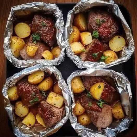 A simple, all-in-one high-protein meal — juicy steak, tender potatoes, and garlic butter flavor, cooked perfectly in foil, Abrar.