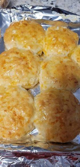 🥓 Bacon Cheddar Biscuits: fold in 2–3 cooked crumbled bacon strips