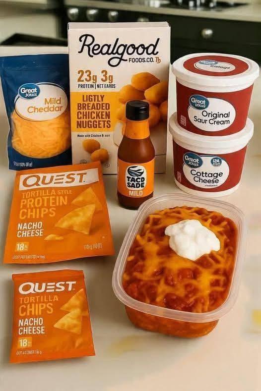 1. Combine cottage cheese, chicken nuggets, and shredded cheese in a bowl.